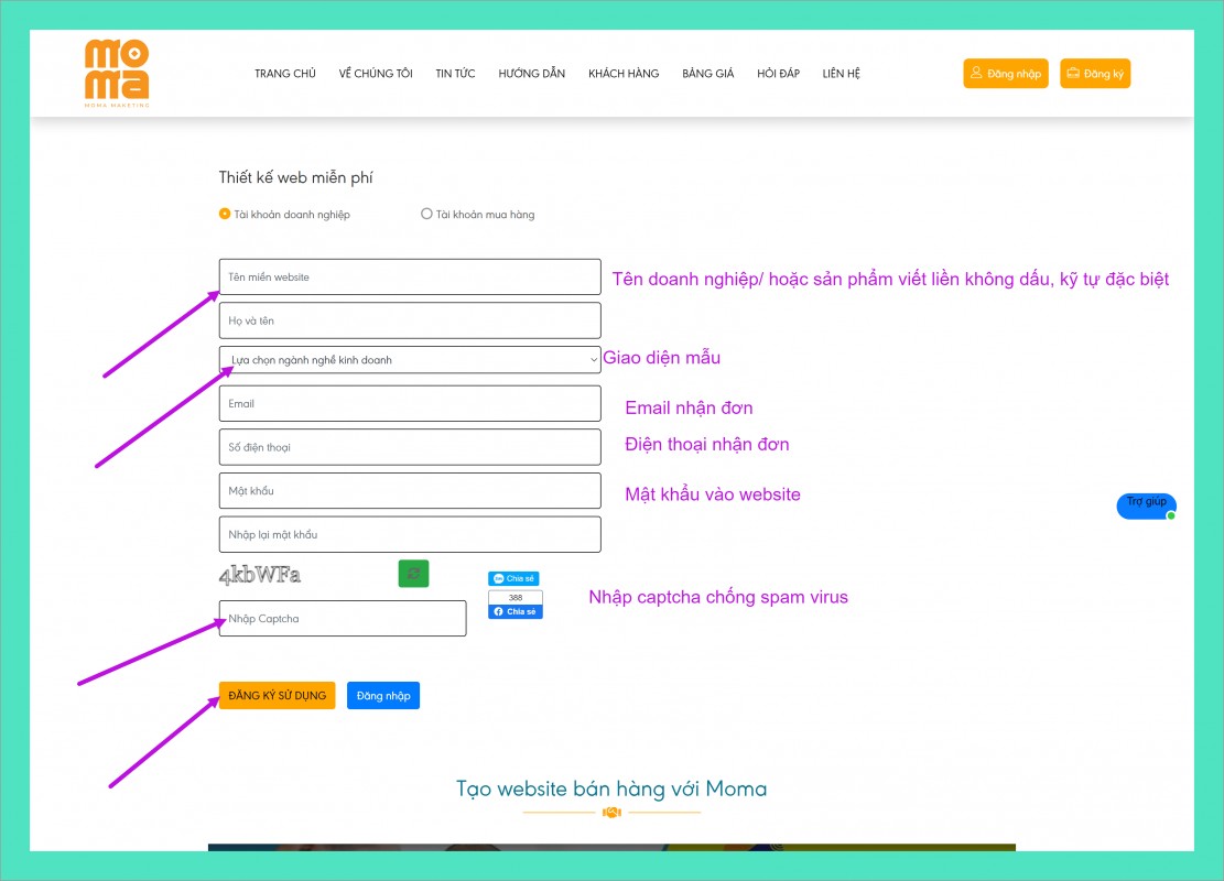 Xem hướng dẫn giải pháp tạo website bán hàng miễn phí moma tại đây