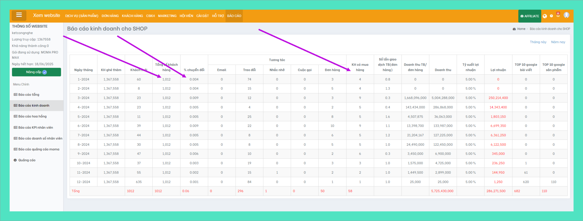 – Giá trị trung bình trên mỗi đơn hàng: Là số tiền thu được trung bình trên mỗi lần bán hàng, ước tính trong một khoảng thời gian dài: tháng, quý, năm.