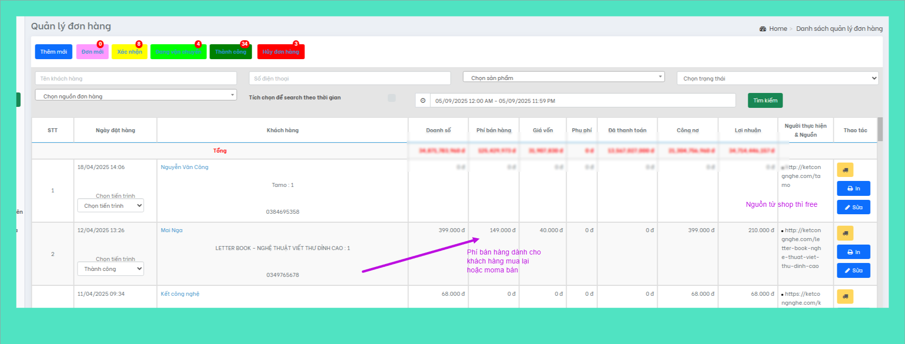- Quản lý được người mua hàng và chăm sóc lại ngời mua