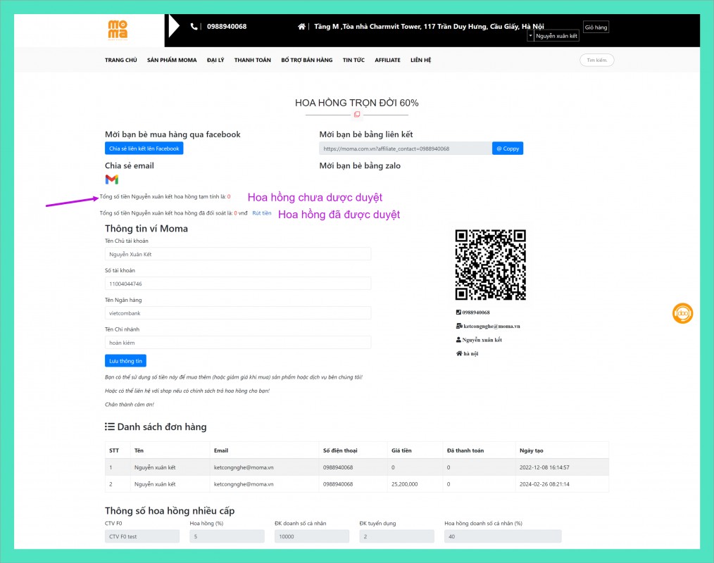 HƯỚNG DẪN SỬ DỤNG PHẦN MỀM AFFILAITE MOMA