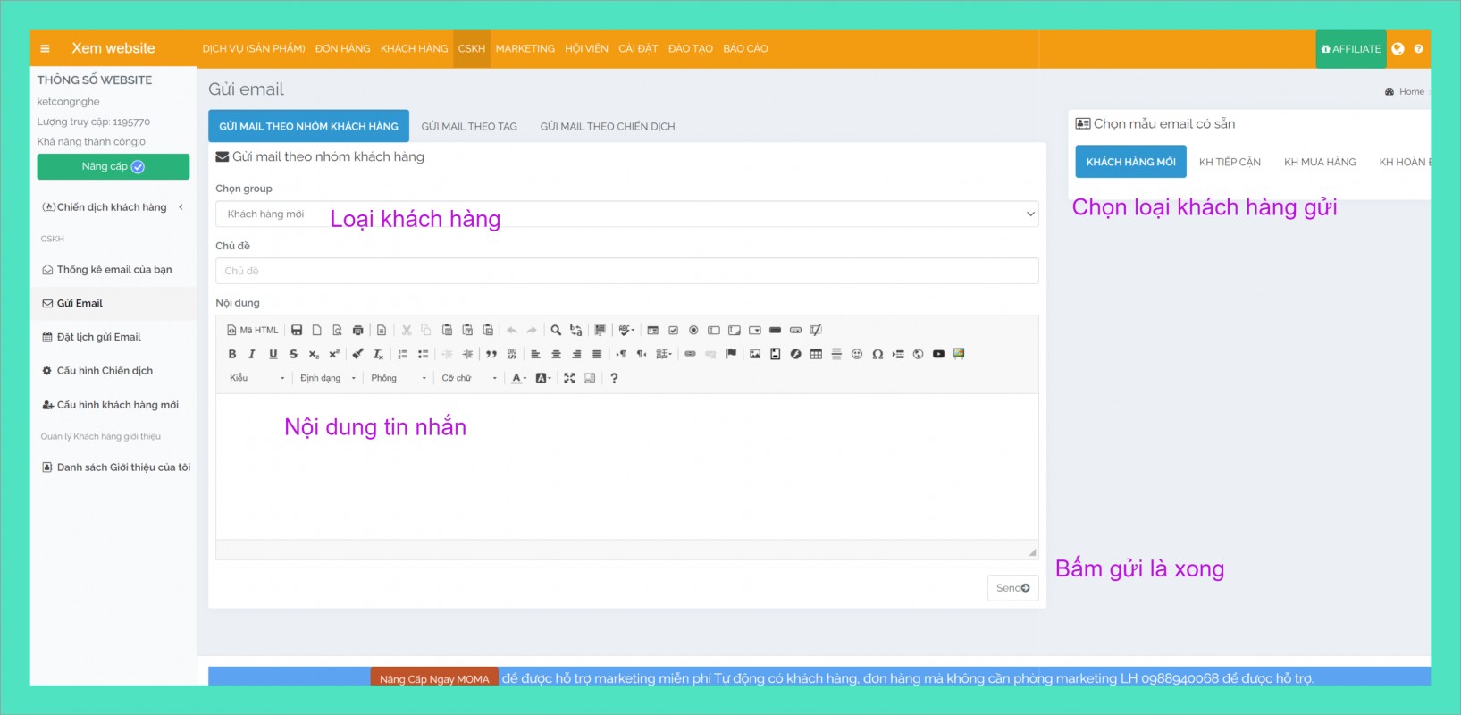 HƯỚNG DẪN GỬI TIN NHẮN TRÊN MOMA, LỢI ÍCH HƠN LÀ BẠN TẢI LÊN BAO NHIÊU KHÁCH HÀNG CŨNG ĐƯỢC