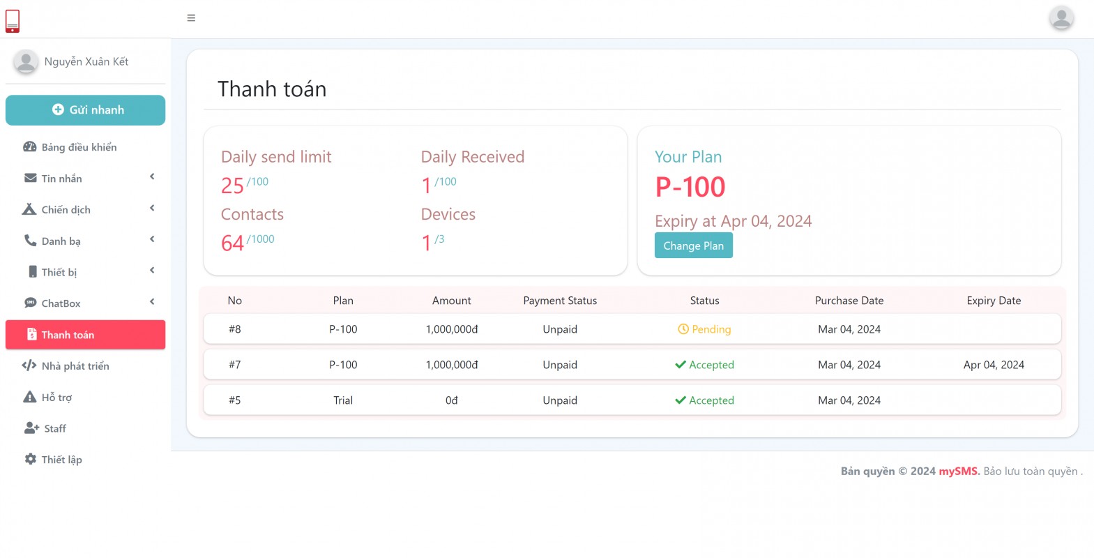 Tính nhanh gửi 1000 tin nhắn bạn mất 250.000đ/ lần gửi