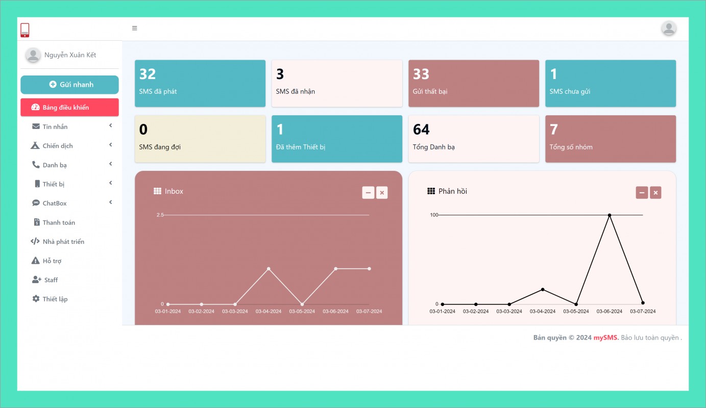 - website: Truy cập đường link : https://mysms.vn/login